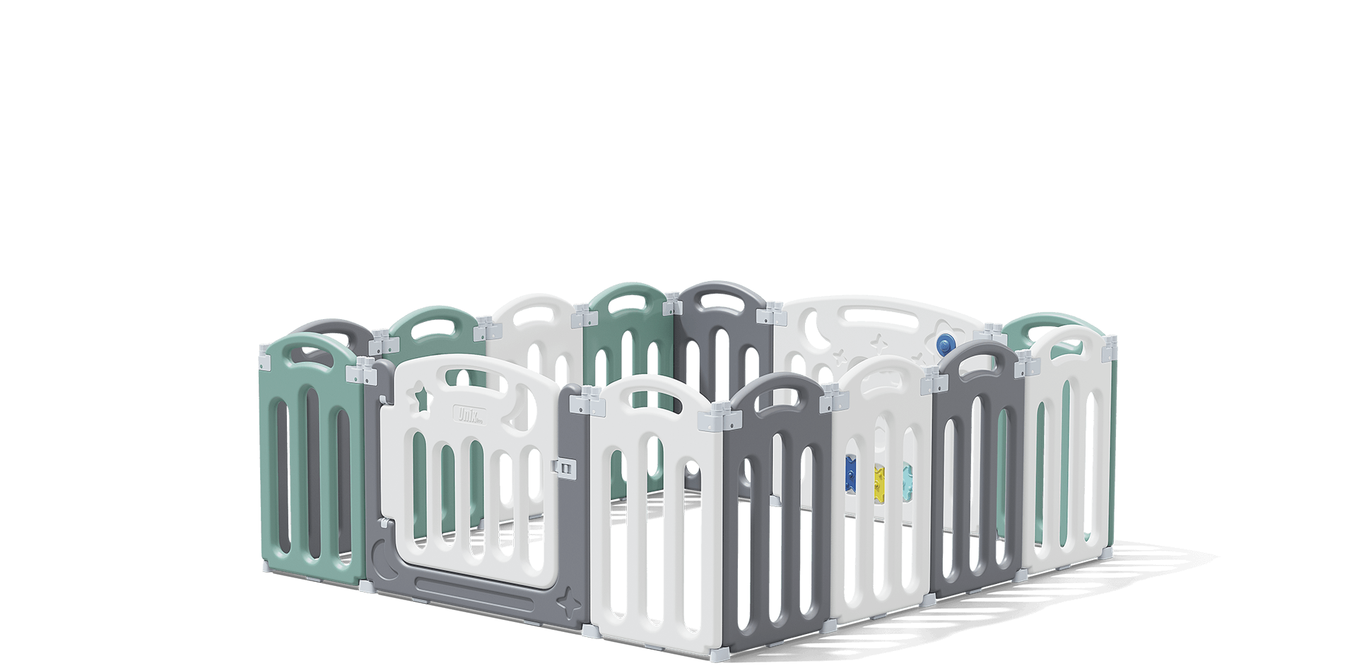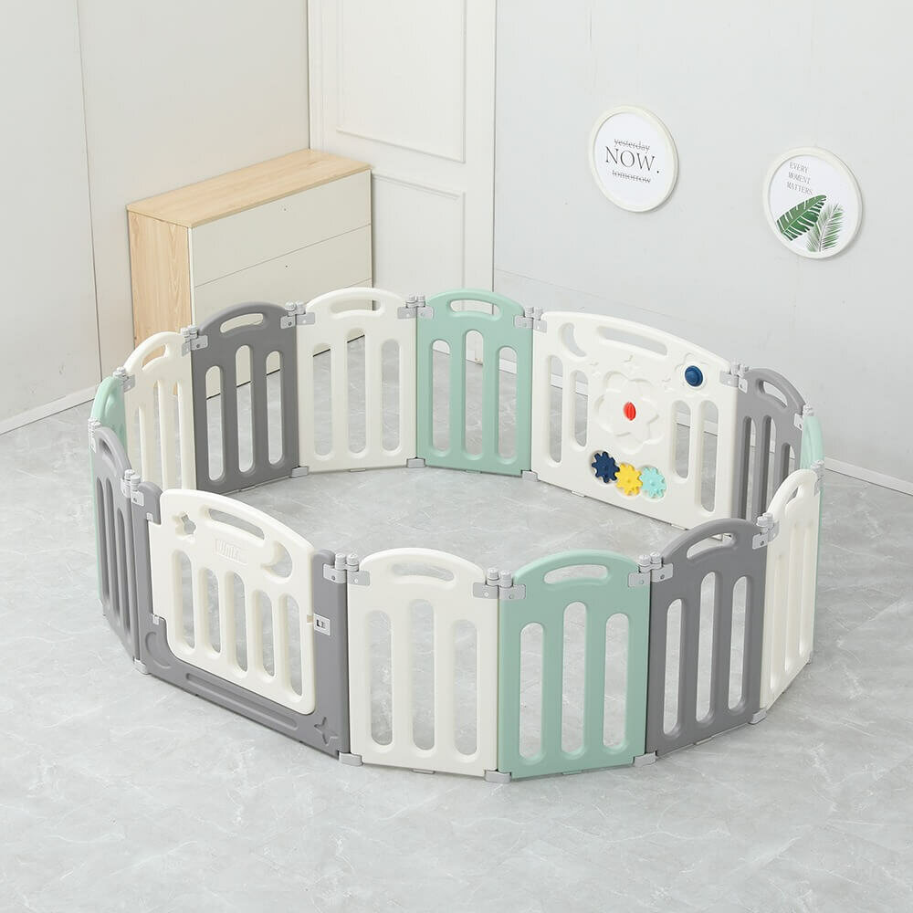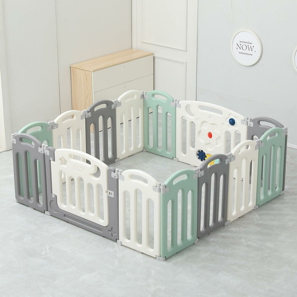 Манеж UNIX Kids Simple, для дома и улицы, бизиборд, от 0 месяцев, складной, белый/серый/зеленый, 151x151 см