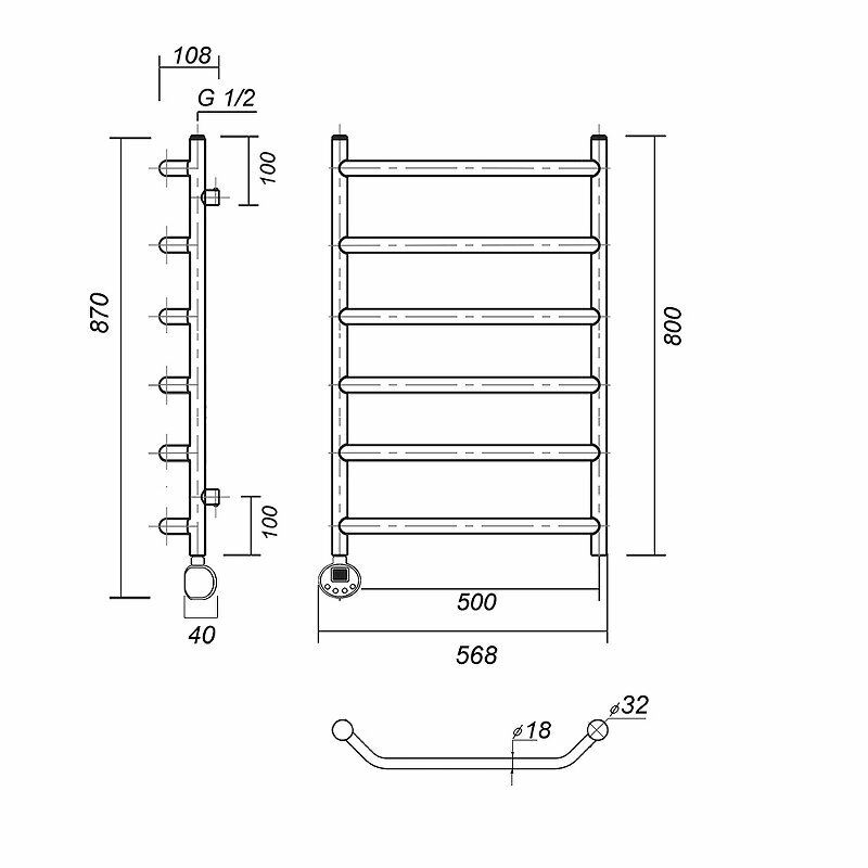 | Дополнительная информация | Комплектация полотенцесушитель, крепления, световой индикатор, электрический кабель, нагревательный тэн |