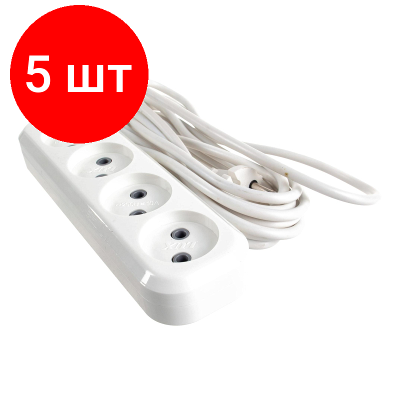 Купить Комплект 5 штук, Удлинитель LUX У4-О-05 4-местный б/заз., 250В 10А, 5м