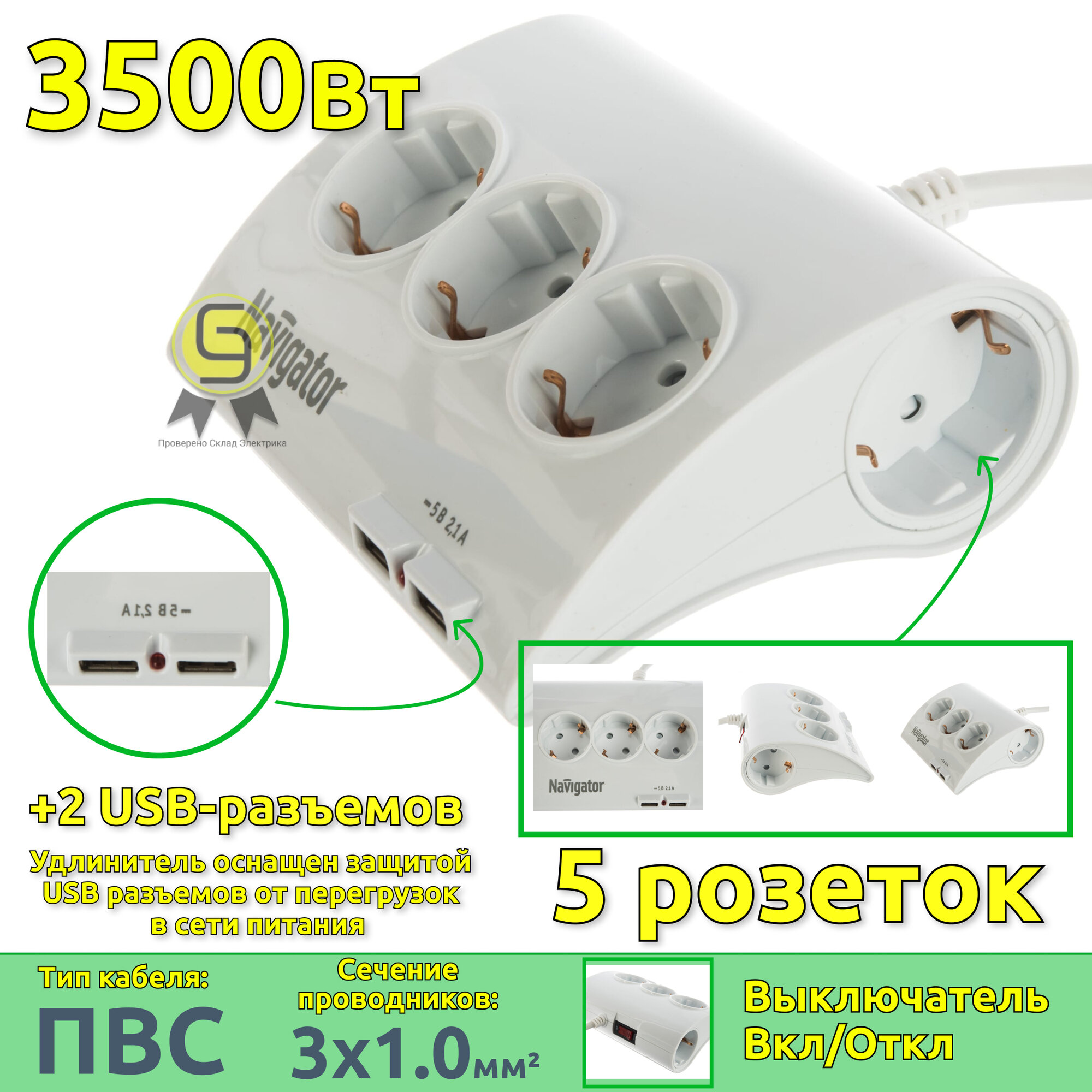 Ниже Вы можете прочитать отзывы на Удлинитель бытовой Navigator 71 544, с выкл., 5 розеток, с зазем., 2 USB-разъема, 1.8 м, ознакомится с подробными характеристиками, посмотреть интересные обзоры и фотографии на Удлинитель бытовой Navigator 71 544, с выкл., 5 розеток, с зазем., 2 USB-разъема, 1.8 м.