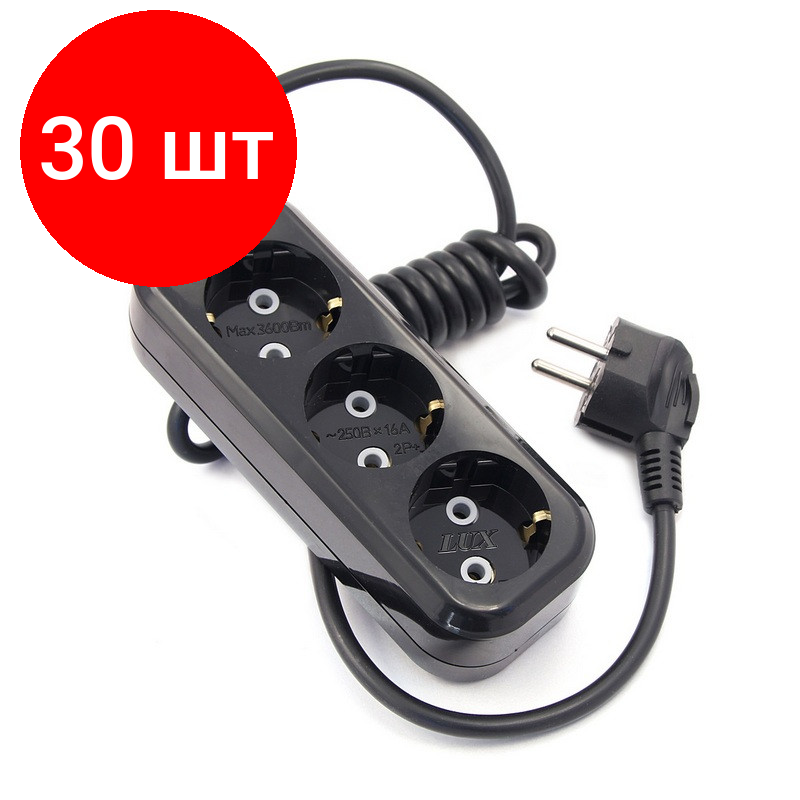 Купить Комплект 30 штук, Удлинитель LUX У3-Е-03 3-местный с з/к, 250В 16А, 3м, черный
