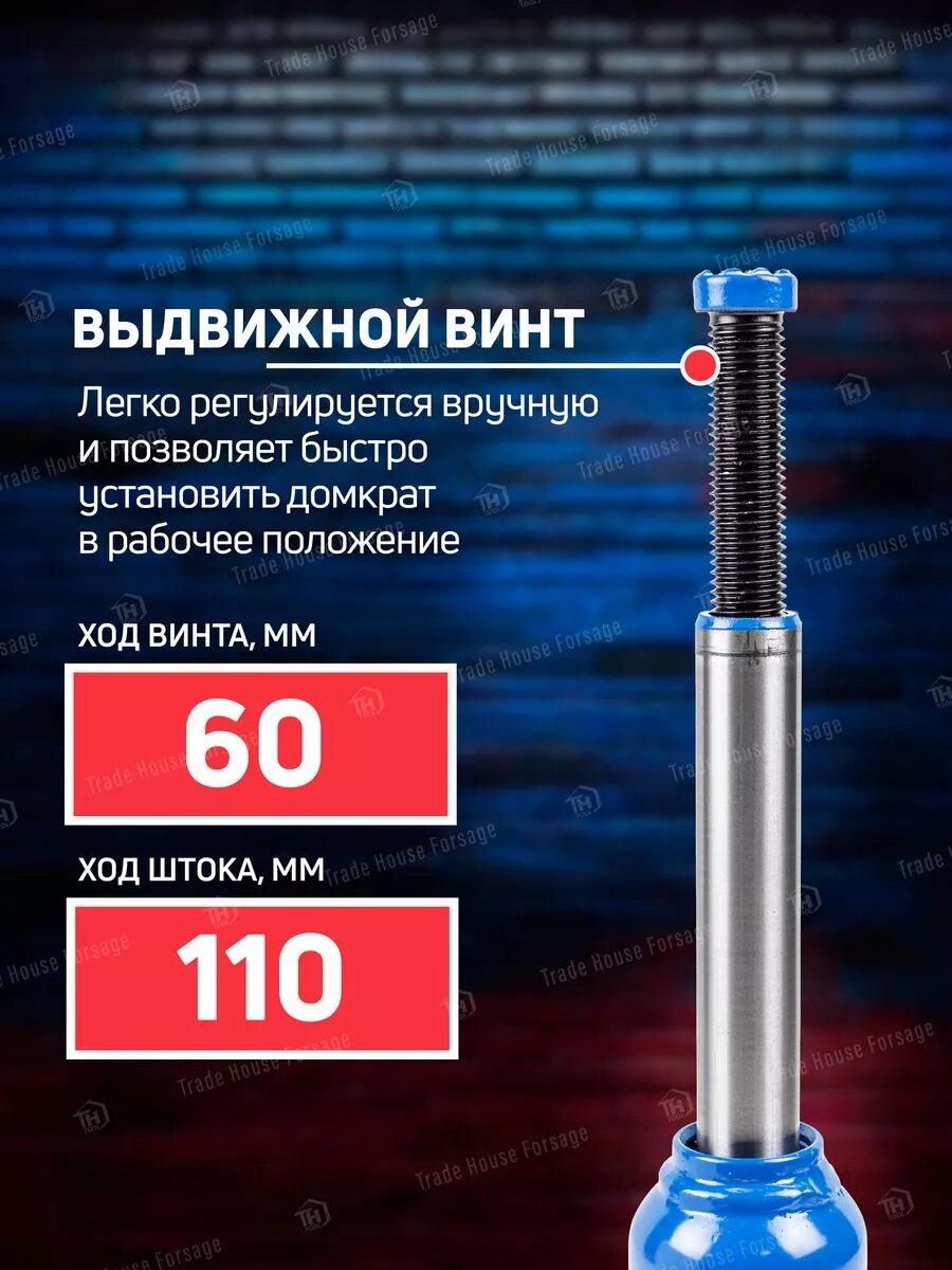 СохранитьДомкрат гидравлический бутылочный, 8т (с предохранительным клапаном, минимальная высота: 190 мм, ход штока: 110 мм, ход винта: 60 мм, максимальная выс Forsage F-T90804(DS) интересное: