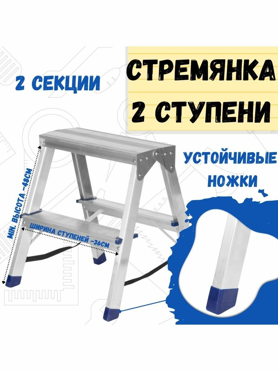 Стремянка алюминиевая двухсторонняя ALUMET A7202, 2 ступени