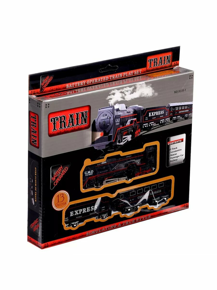 | Подробная комплектация | рельсы 13 элементов, локомотив, вагоны |