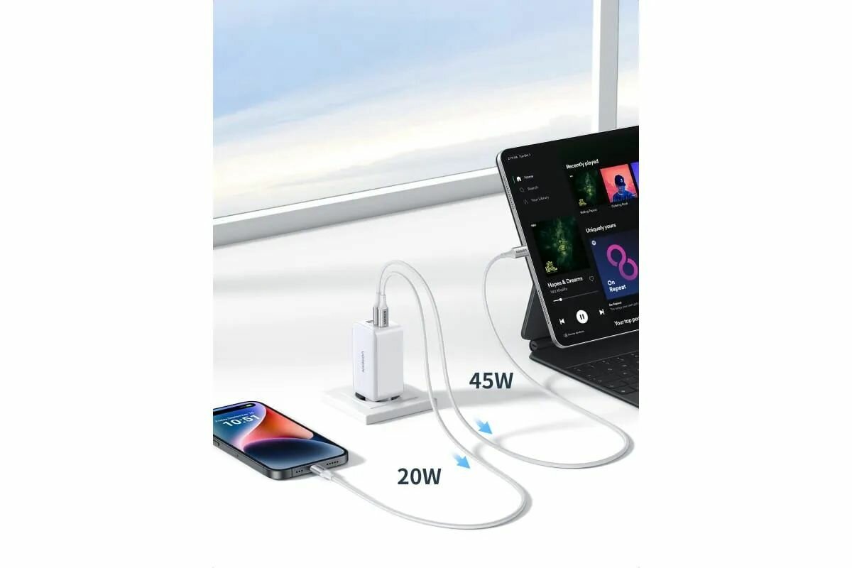 Сетевое зарядное устройство Ugreen CD294 USB-C+USB-C 45W PD Charger(25W+20W) CD294 (15327), белый