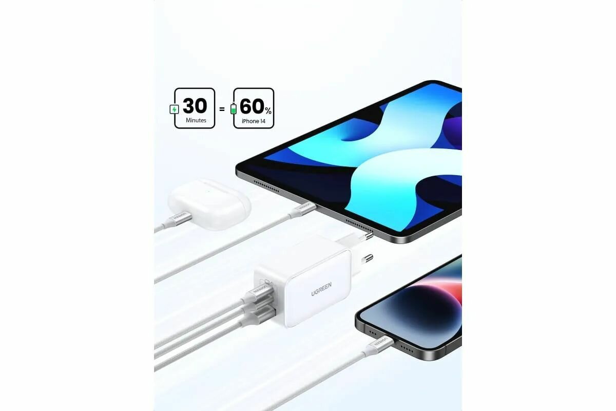 Ниже Вы можете прочитать отзывы на Сетевое зарядное устройство Ugreen CD 244 USB-A+2ХUSB-C, 65W GAN Tech Fast Charger, цвет белый (15334), ознакомится с подробными характеристиками, посмотреть интересные обзоры и фотографии на Сетевое зарядное устройство Ugreen CD 244 USB-A+2ХUSB-C, 65W GAN Tech Fast Charger, цвет белый (15334).