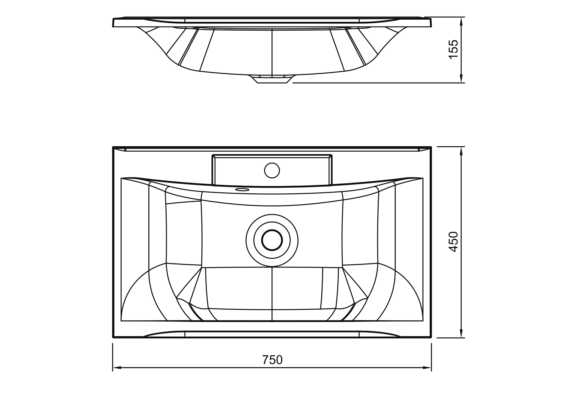 Раковина из искусственного мрамора, 750x450x150