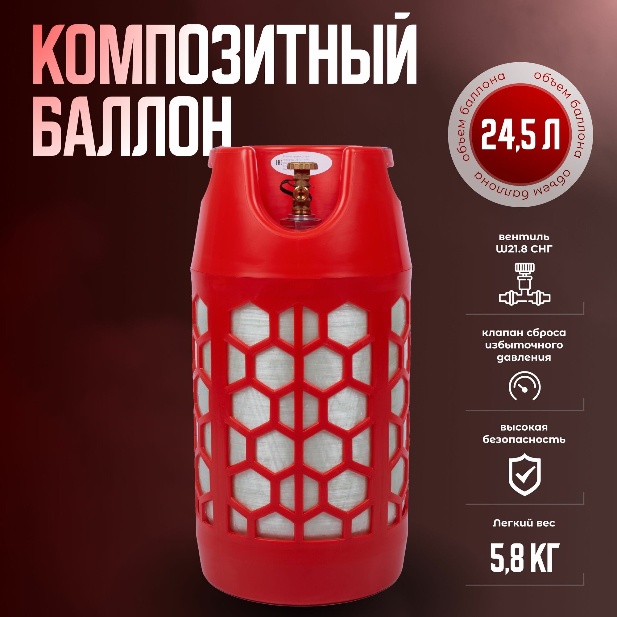 Баллон газовый композитный для сжиженных газов, красный, 24,5 л (LPG/СУГ) RSV Composite
