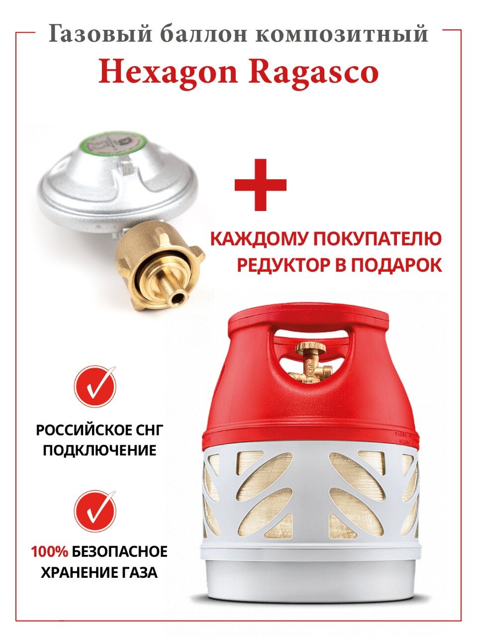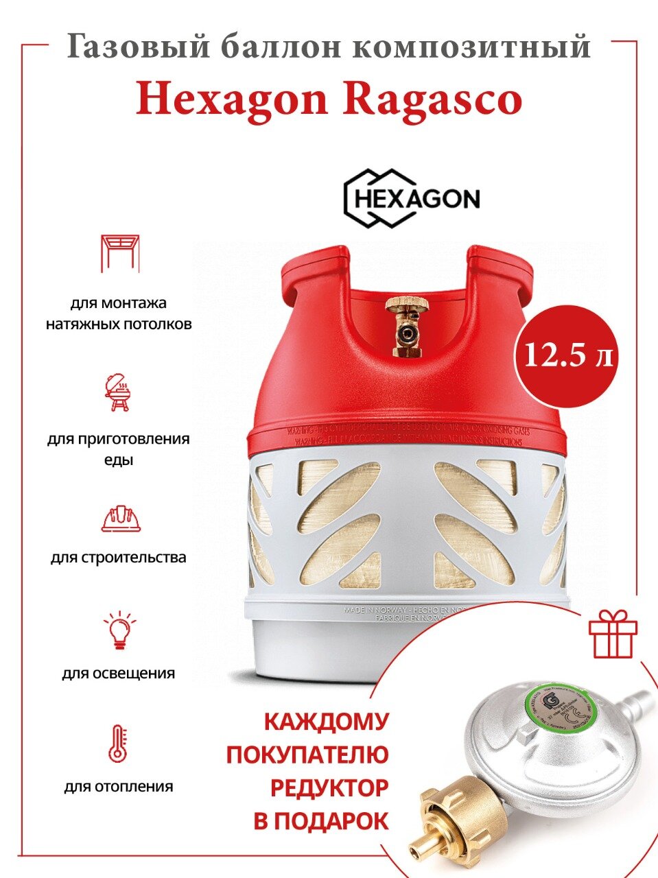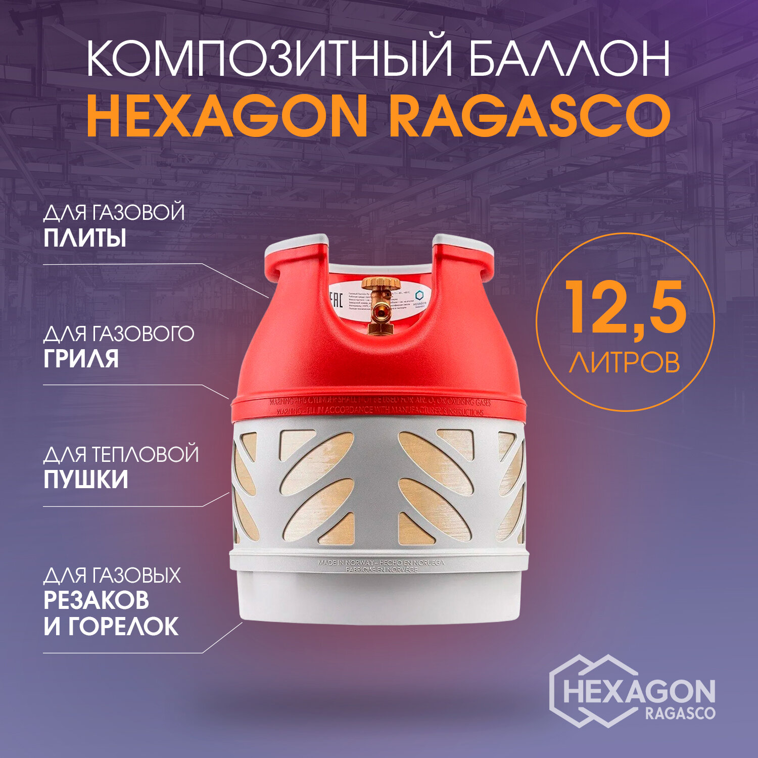 Баллон пропановый HEXAGON RAGASCO 12,5 л (серия LPG) композитный, СНГ соединение