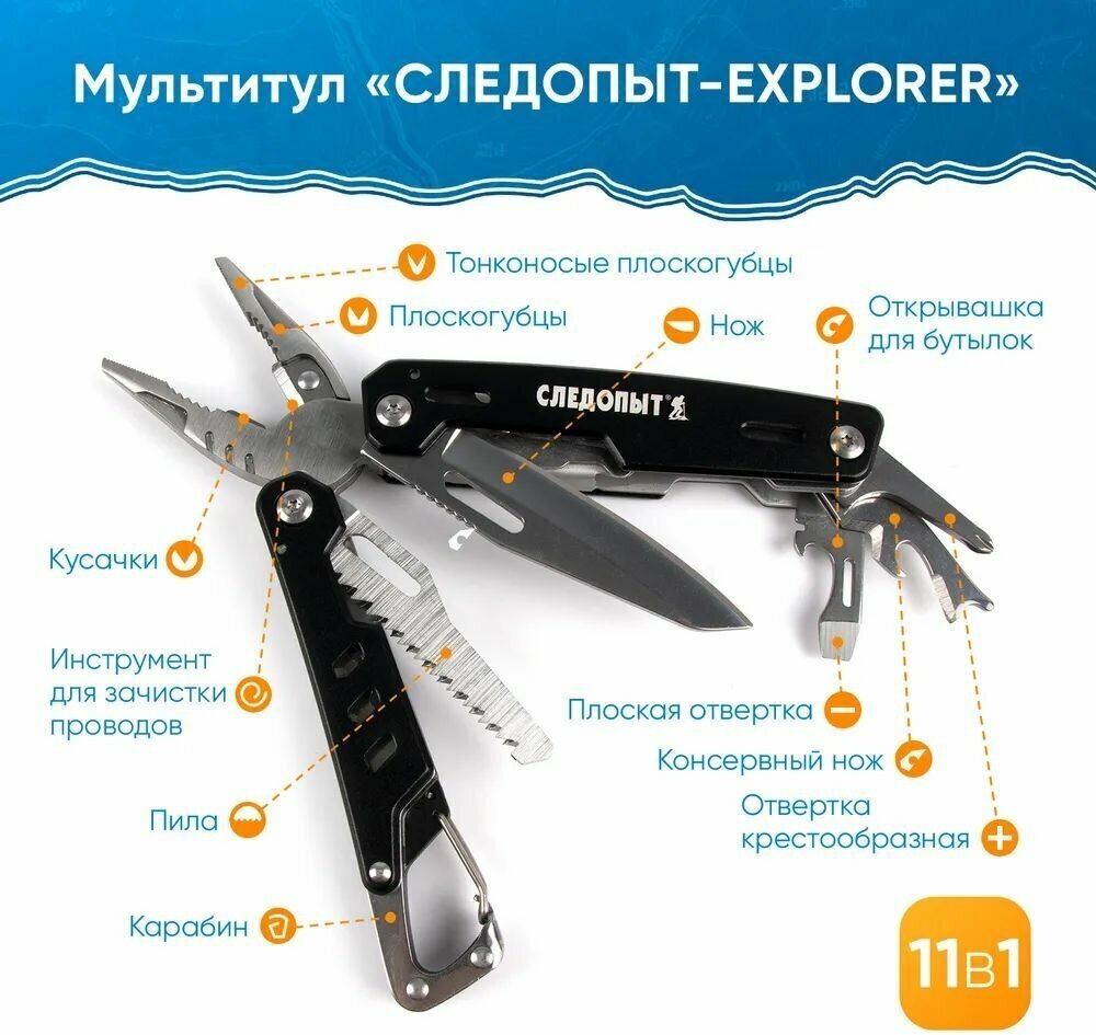 Мультитул (плоскогубцы) "следопыт-explorer", 105х42х18 мм, 11 предметов, в чехле, на блистере