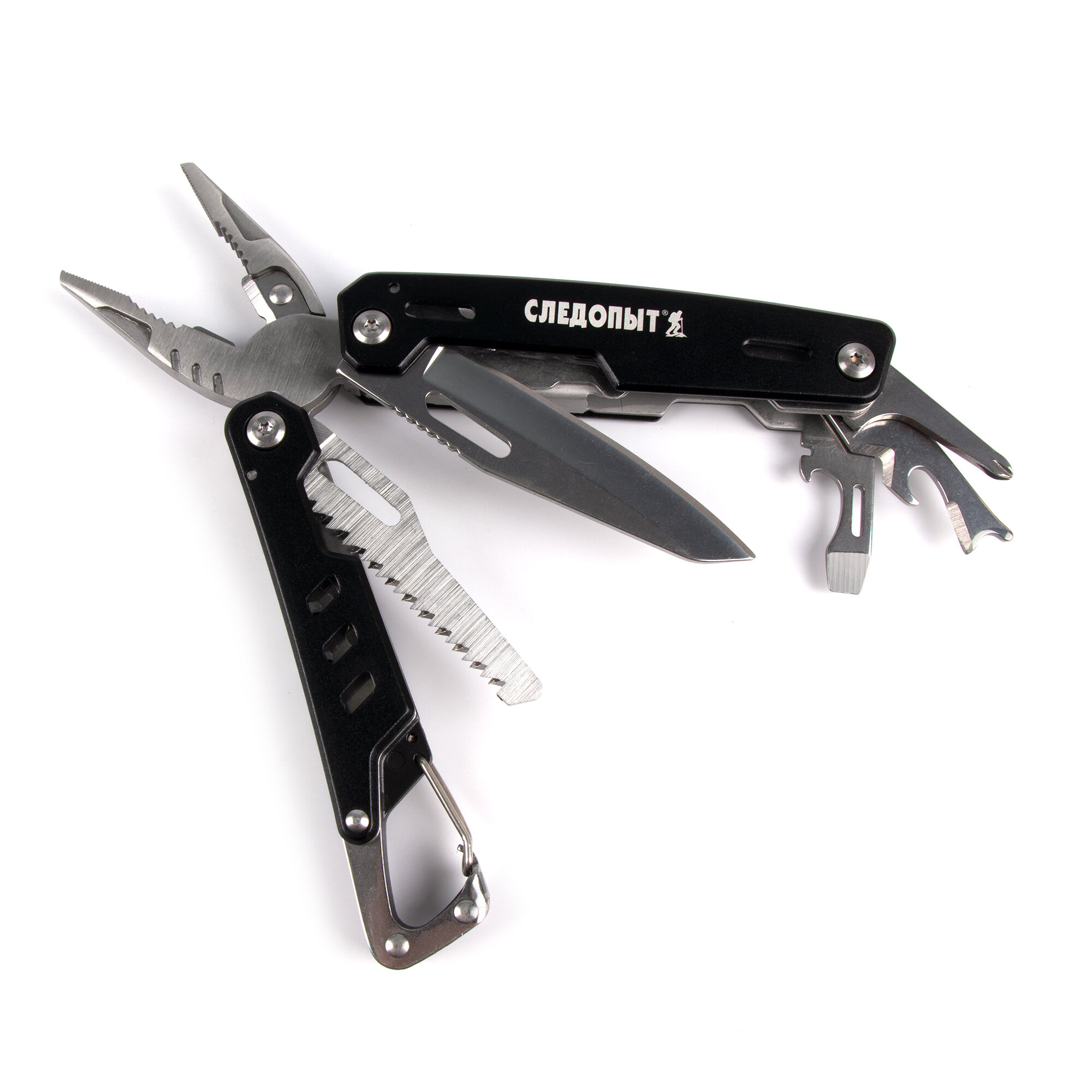 | Инструменты (функции) подробно | тонконосые плоскогубцы, плоскогубцы, кусачки, пила, карабин, нож, отвертка крестообразная, плоская отвертка, консервный нож, открывашка для бутылок, инструмент для зачистки проводов |