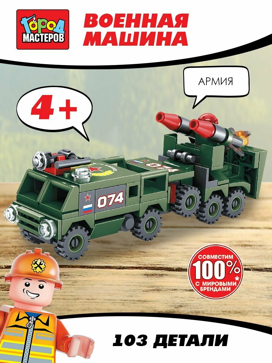 Детский конструктор для мальчиков военная машина 103 детали / Игровой набор 3 в 1 Город Мастеров