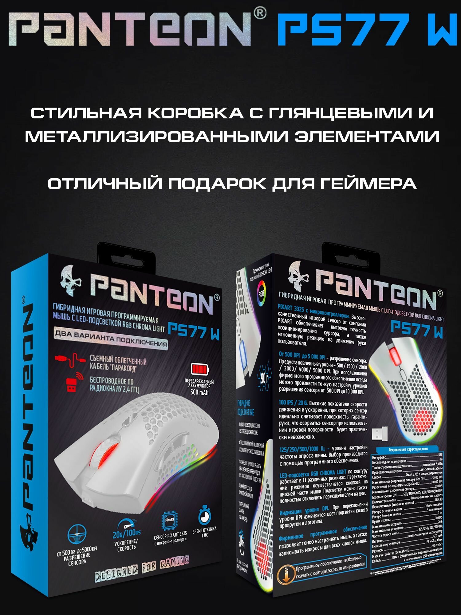 Гибридная игровая мышь беспроводная и проводная мышь с LED-подсветкой RGB CHROMA light PANTEON PS77 W белая интересное: