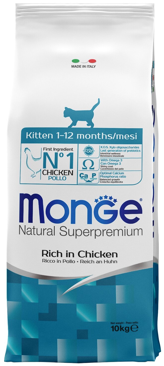 Сухой корм для котят Monge Natural Superpremium, с курицей 10 кг