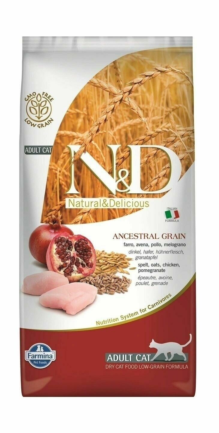 Корм для кошек сухой N&D Ancestral Grain / Фармина Cat Chicken & Pomegranate Adult низкозерновой для взрослых животных всех пород, гранулы с курицей