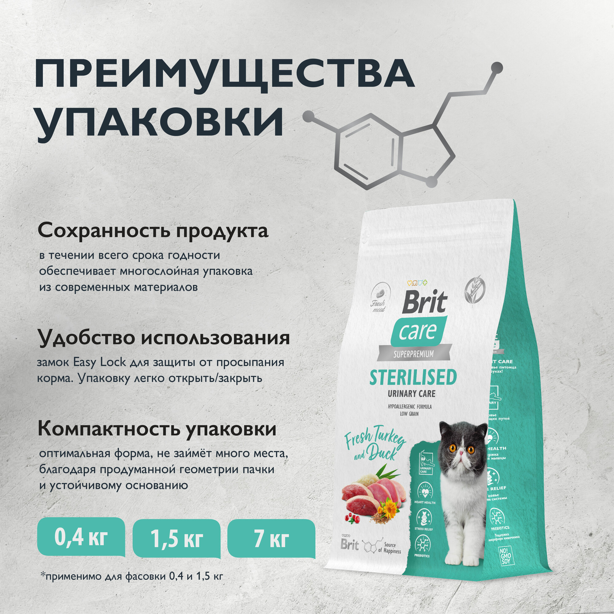 Сухой корм Brit Care Cat Sterilised Metabolic для стерилизованных кошек, с индейкой, улучшенный обмен веществ 1.5 кг