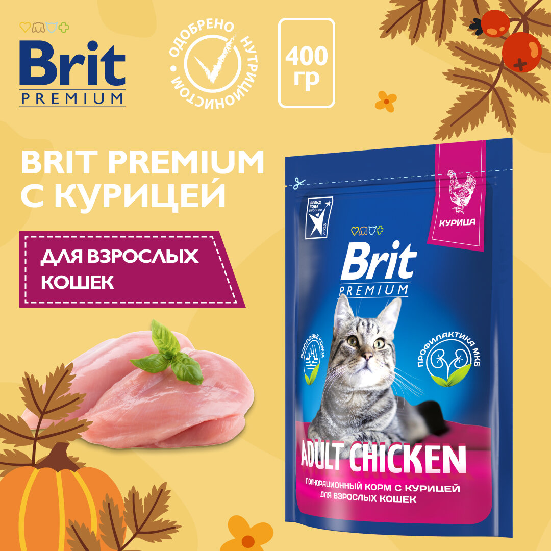 Brit Premium 2шт по 400г Cat Adult Chicken корм для взрослых кошек с курицей