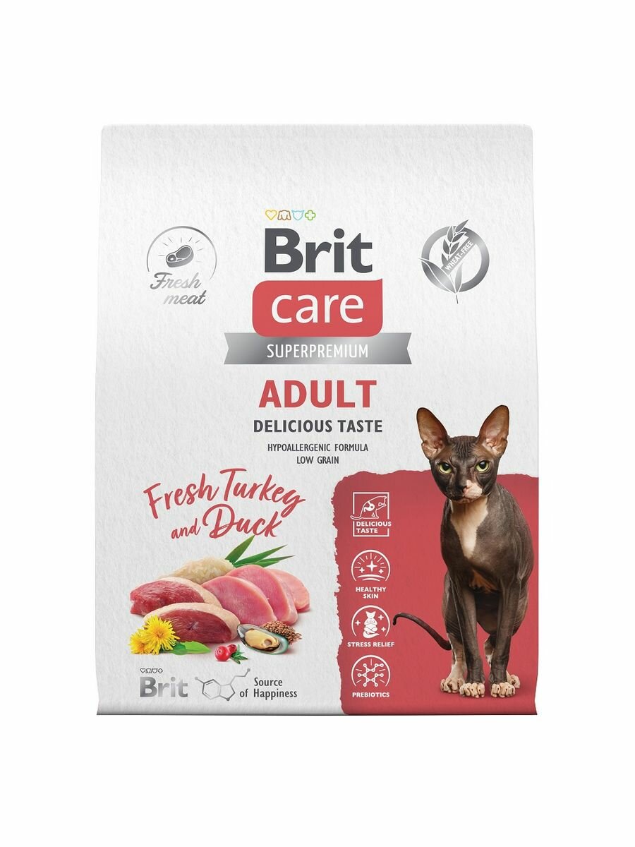 Сухой корм для кошек Brit Care Cat Adult Delicious Taste с индейкой и уткой, 1,5 кг