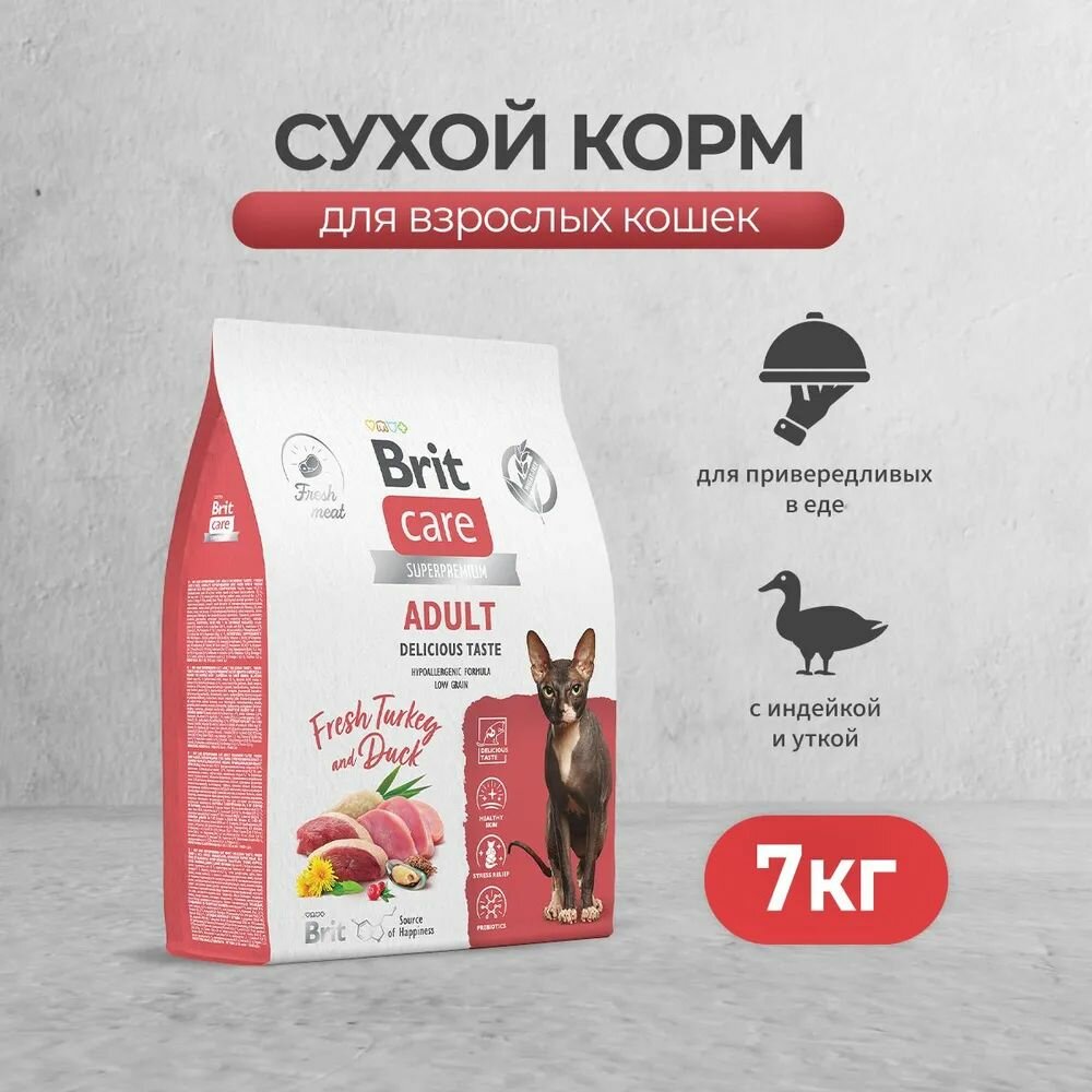 СохранитьСухой корм для кошек Brit Care Cat Adult Delicious Taste с индейкой и уткой, 7 кг интересное: