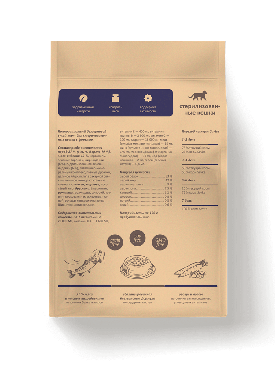 СохранитьSAVITA для стерилизованных кошек с форелью 2 кг. интересное: