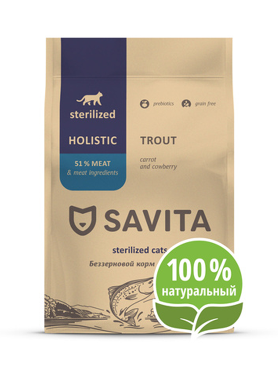 SAVITA беззерновой корм для стерилизованных кошек с форелью (2 кг)