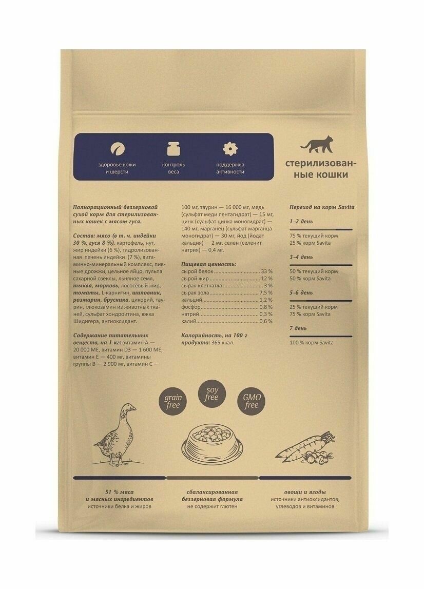 SAVITA Беззерновой корм для стерилизованных кошек с мясом гуся, 2 кг
