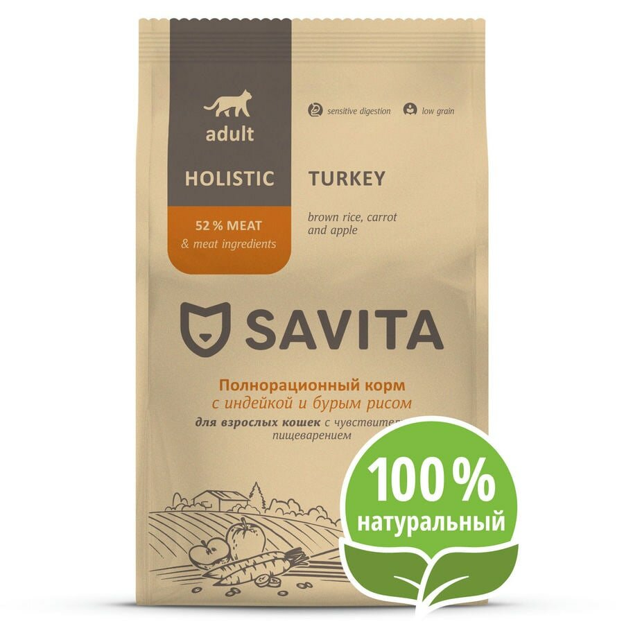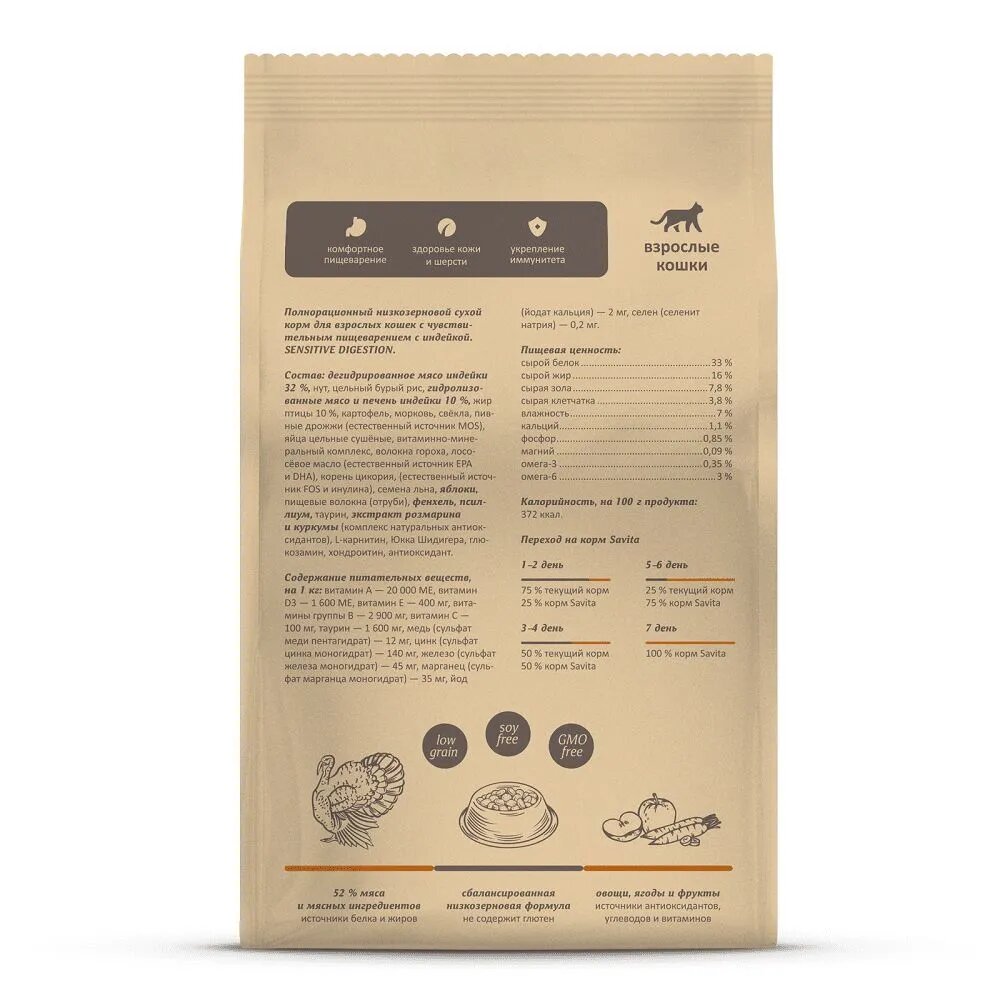 Купить SAVITA для взрослых кошек с чувствительным пищеварением с индейкой и бурым рисом 5 кг