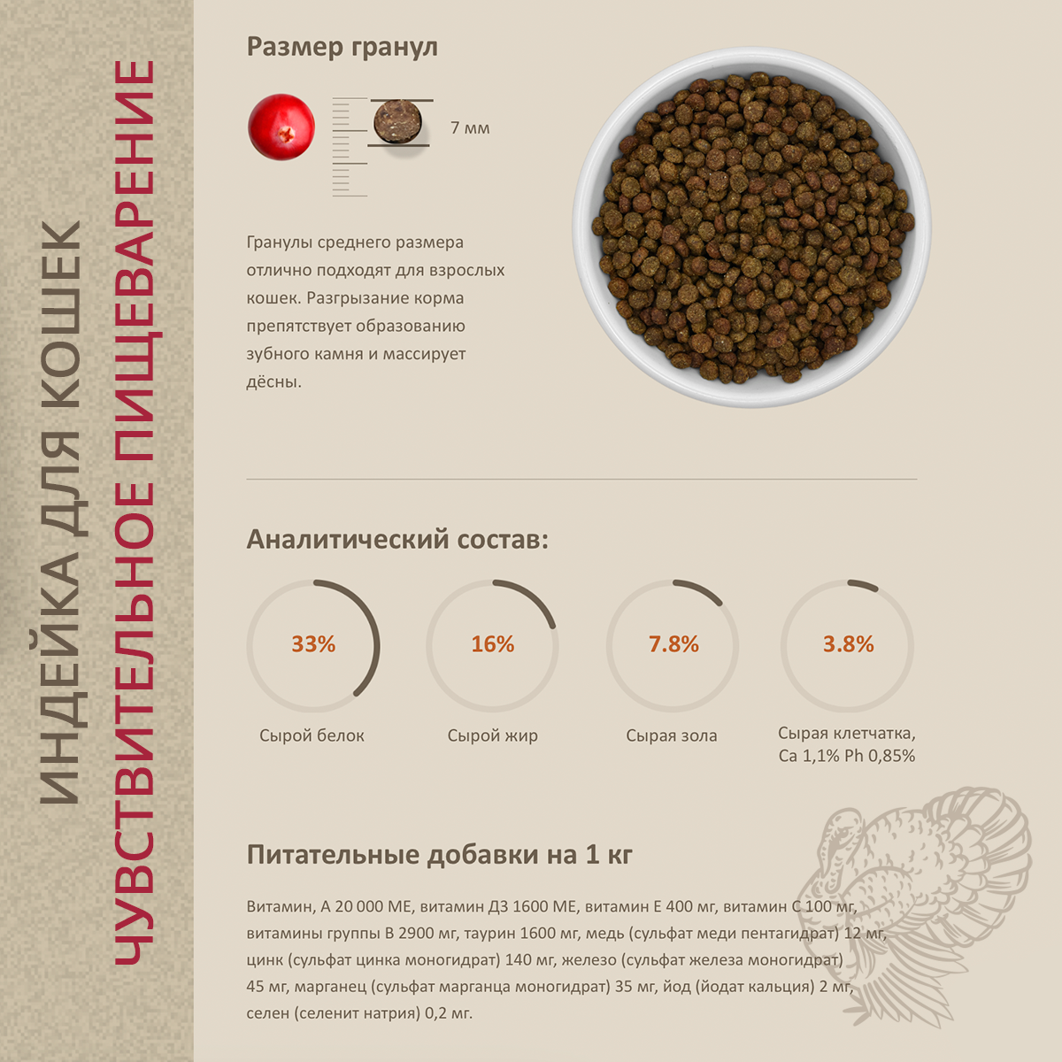 | Особые потребности | беззерновой / для стерилизованных/кастрированных |