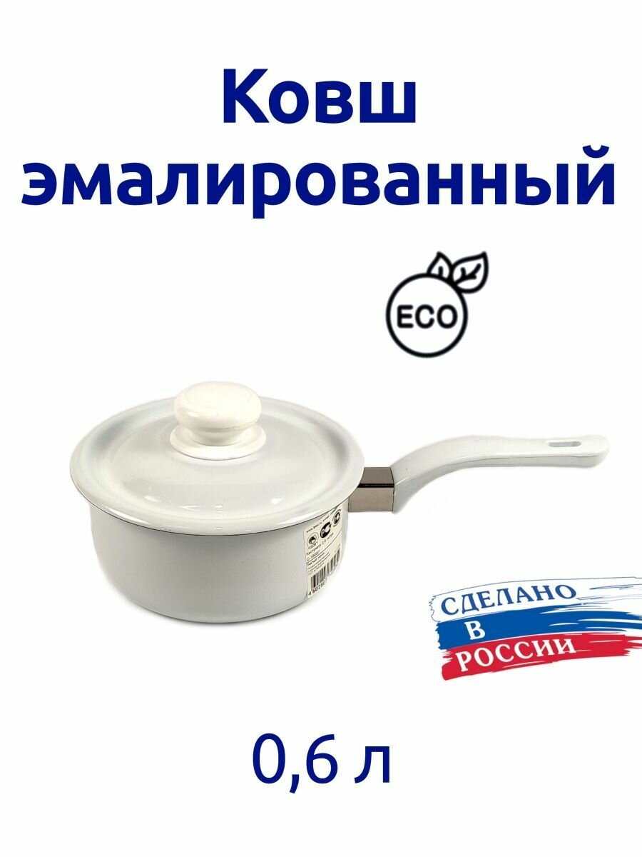 Кастрюля эмаль 0.6Л БЕЛАЯ ковшом лысьва