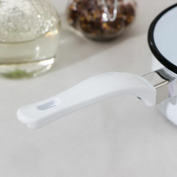 Купить Ковш 600 мл, эмалированная крышка, без деколи, пластиковая ручка, индукция, цвет белый