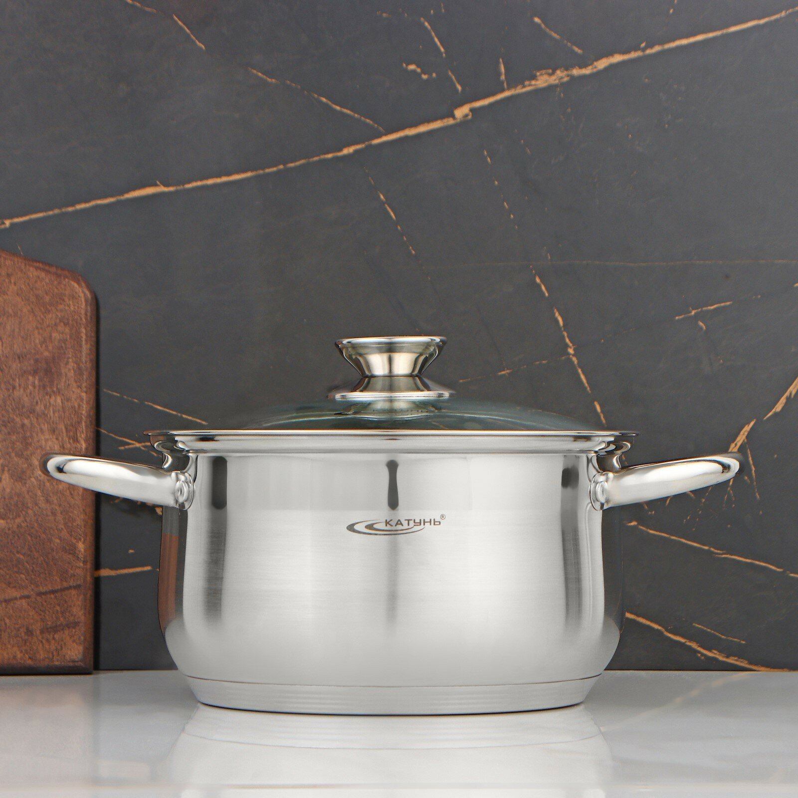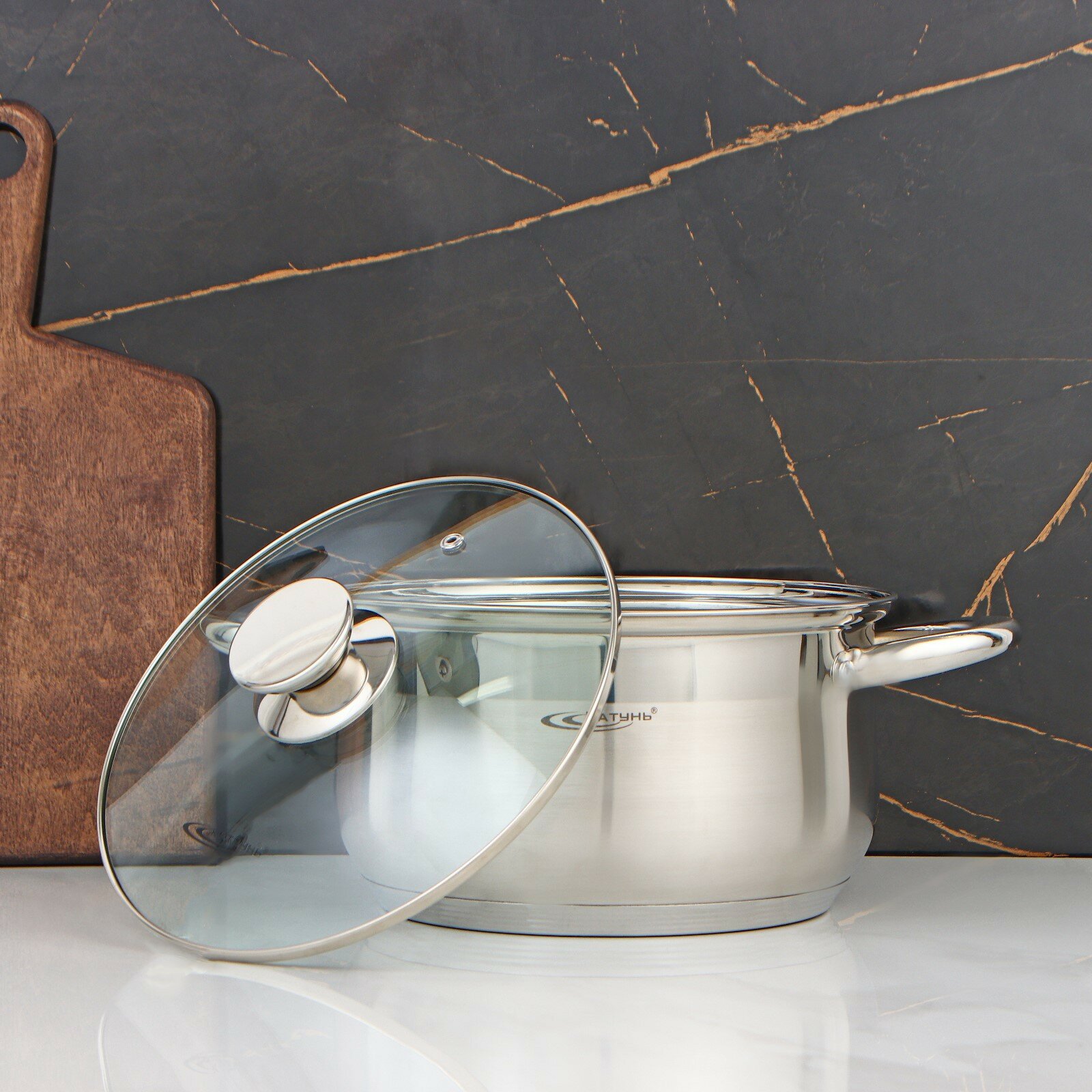 Купить Кастрюля "Катунь" «Диана», d=22 см, 4.2 л, капсульное дно, стеклянная крышка, индукция
