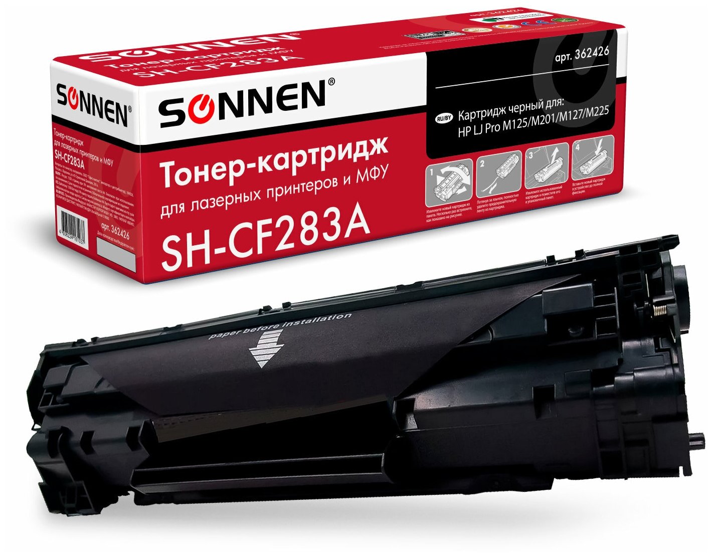 Тонер-картридж для принтера лазерный совместимый Sonnen (SH-CF283A) для Hp LaserJet Pro M125/M201/M127/M225, ресурс 1500 страниц, 362426
