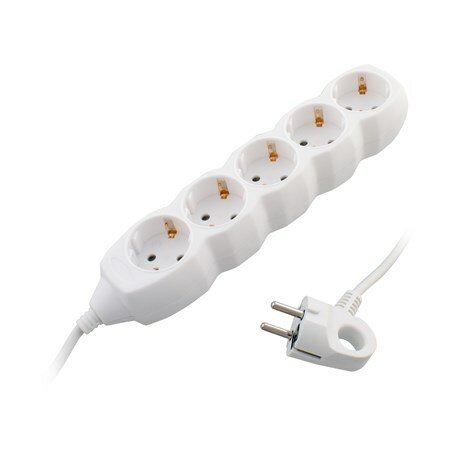 Удлинитель бытовой старт S 5x5 ПВС 3х0.75, с заземлением и выключателем, IP20, 5 метров 5 розеток белый, 10122