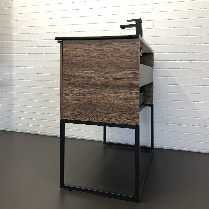 Купить Тумба с раковиной для ванной Comforty Равенна Лофт-90 дуб темно-коричневый с раковиной 90E черной матовой