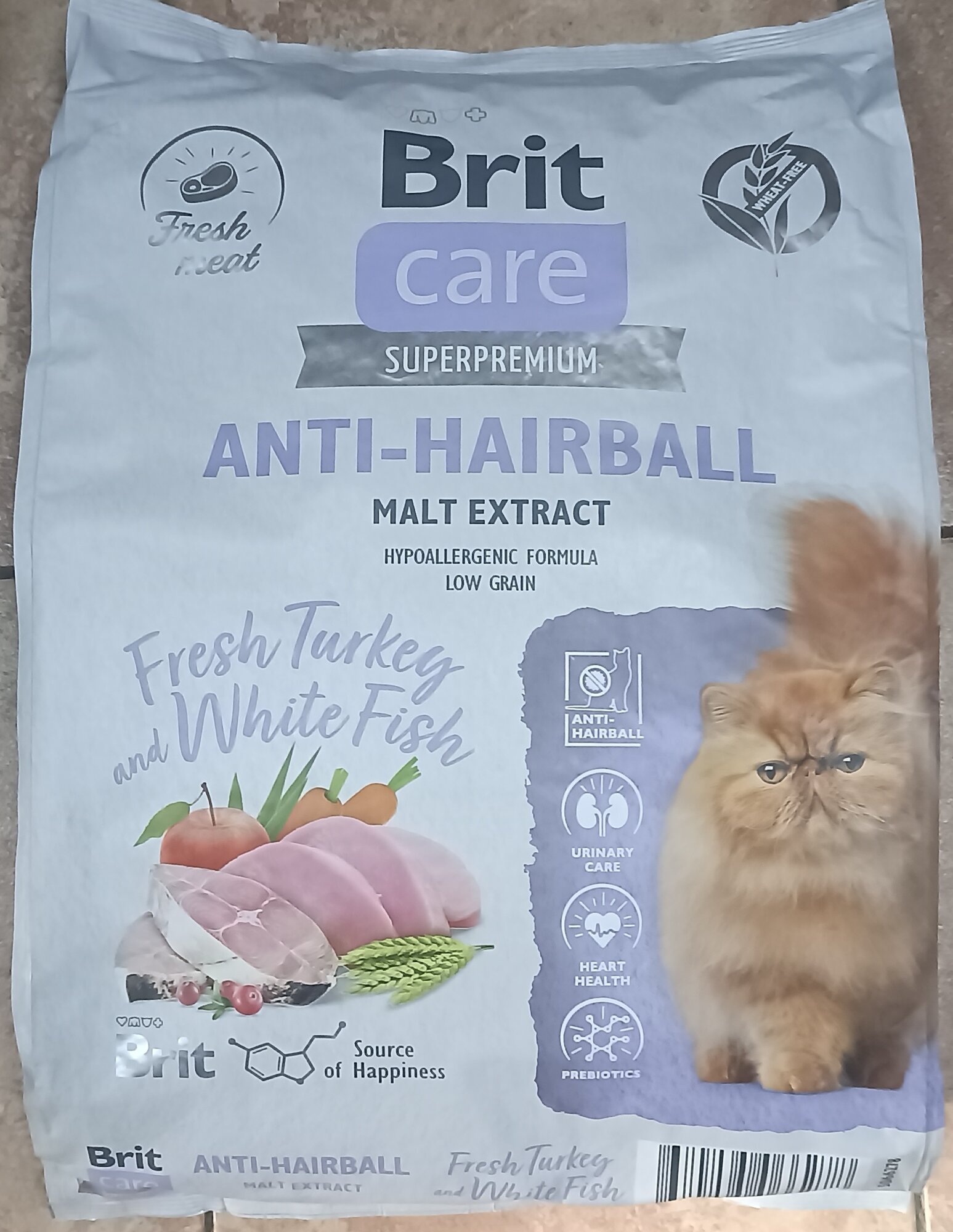 Купить Brit Care сухой корм Superpremium Cat Anti-Hairball с белой рыбой и индейкой для взрослых кошек, Вывод шерсти 7кг