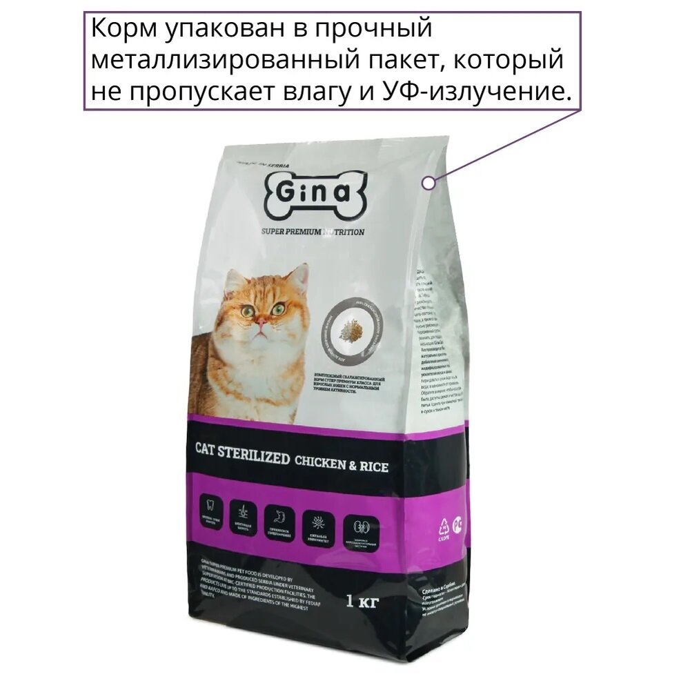 Корм сухой для стерилизованных кошек Gina с курицей и рисом, 1 кг