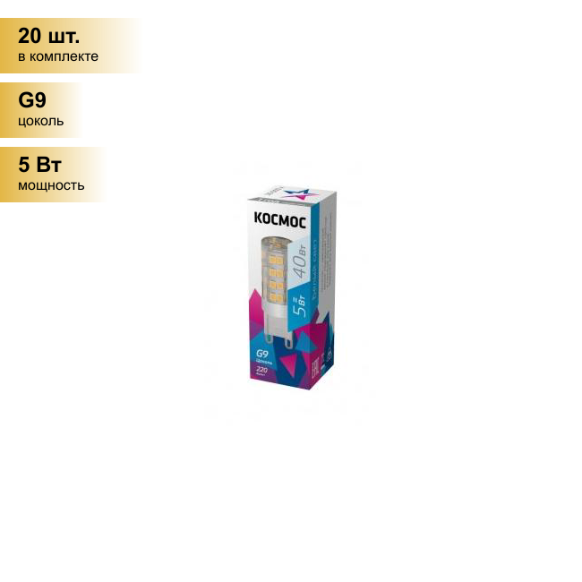 Купить (20 шт.) Светодиодная лампочка Космос G9 5W(420lm) 4500K 4K 50x16 LksmLED5WG9C4500pc . Цоколь G9