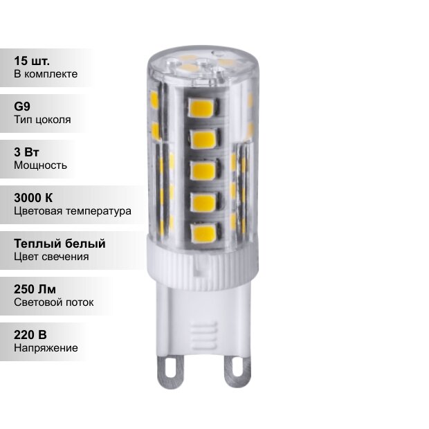 Купить (15 шт.) Светодиодная лампочка Navigator G9 3Вт 230В 3000K