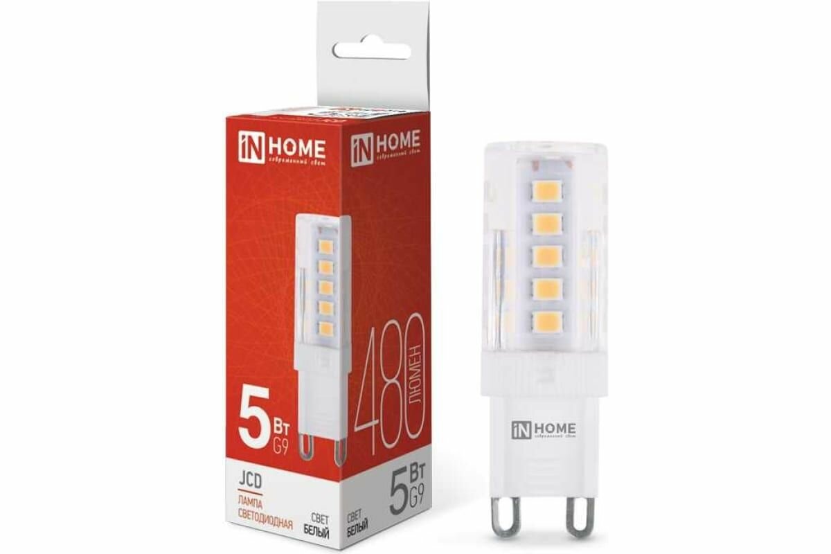 Лампа светодиодная IN HOME LED-JCD, 5 Вт, 230 В, G9, 4000 К, 480 Лм