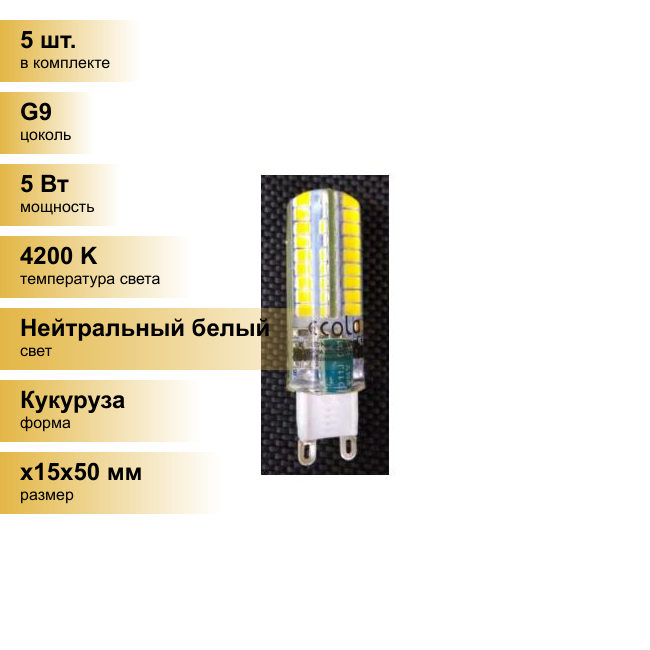 Сохранить(5 шт.) Светодиодная лампочка Ecola G9 5W 4200K 4K 320° 50x15 G9RV50ELC Нейтральный белый. Цоколь G9 интересное: