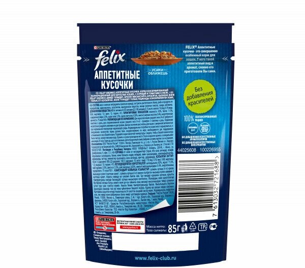 | Отзыв: | Всегда дома имеется большой запас этого корма (наряду с другими пакетиками Felix), так как другие марки моя кошка есть категорически отказывается. |