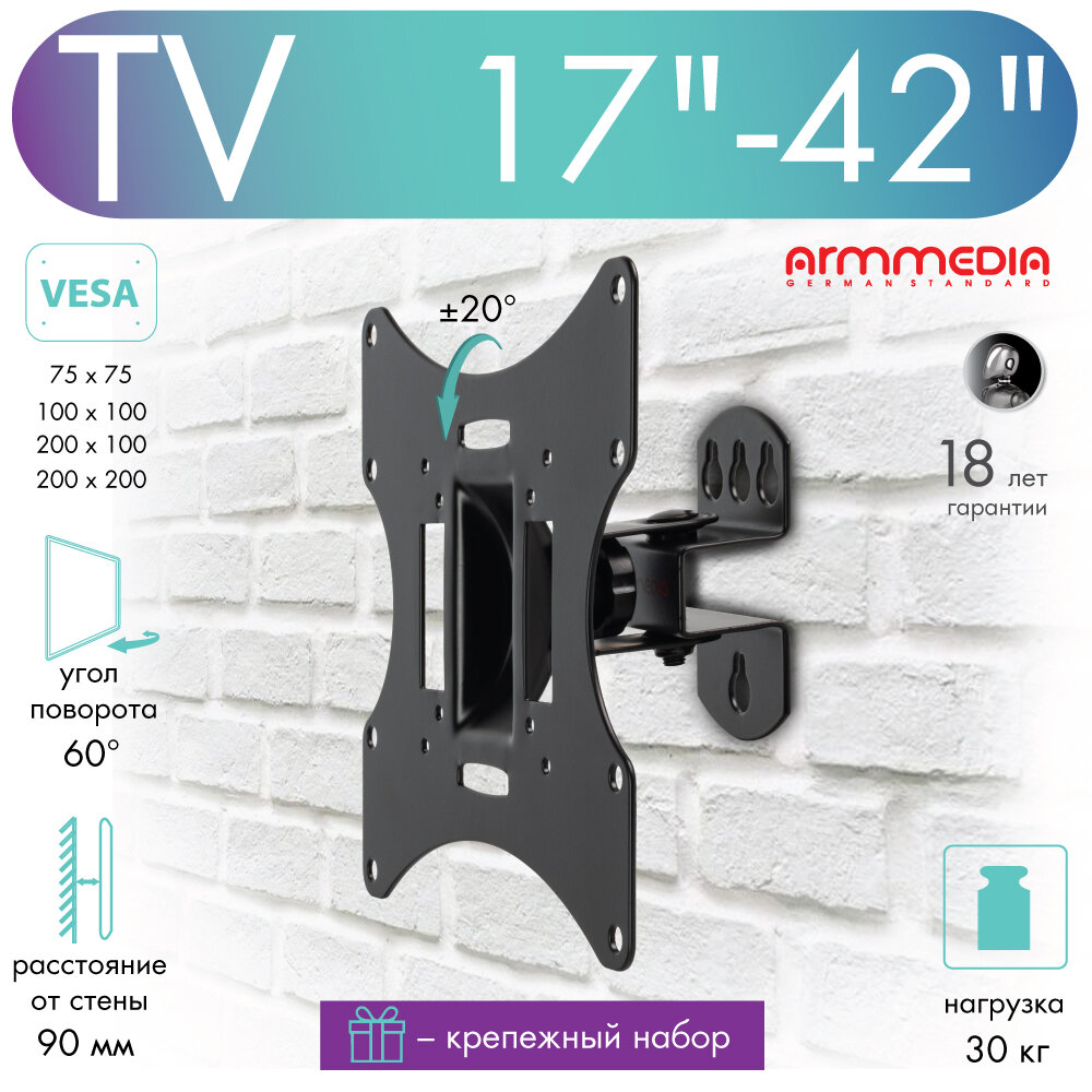 Кронштейн для телевизора на стену / крепление наклонно-поворотное Arm Media LCD-201 / до 42 дюймов / vesa 200x200