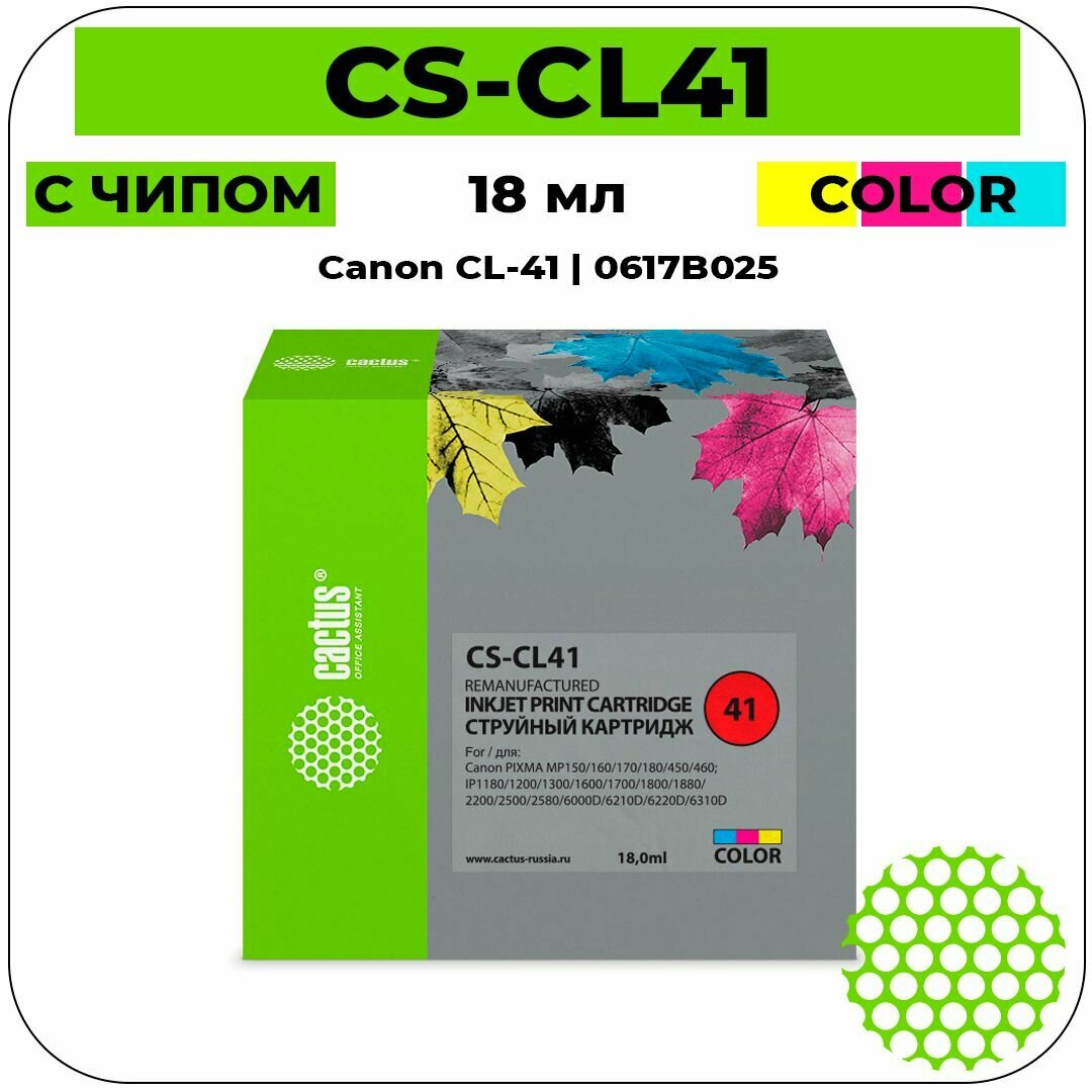 Cactus Расходные материалы CL-41 Картридж для Canon Pixma MP150 MP160 MP170 MP180 MP210 MP220 MP450 MP460 MP470 iP1200 iP1300 iP1600 iP1700 iP1800