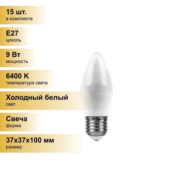 Feron свеча C37 E27 9W(840lm) 6400K 6K матовая 100x37, LB-570 25938 (арт. 694351)