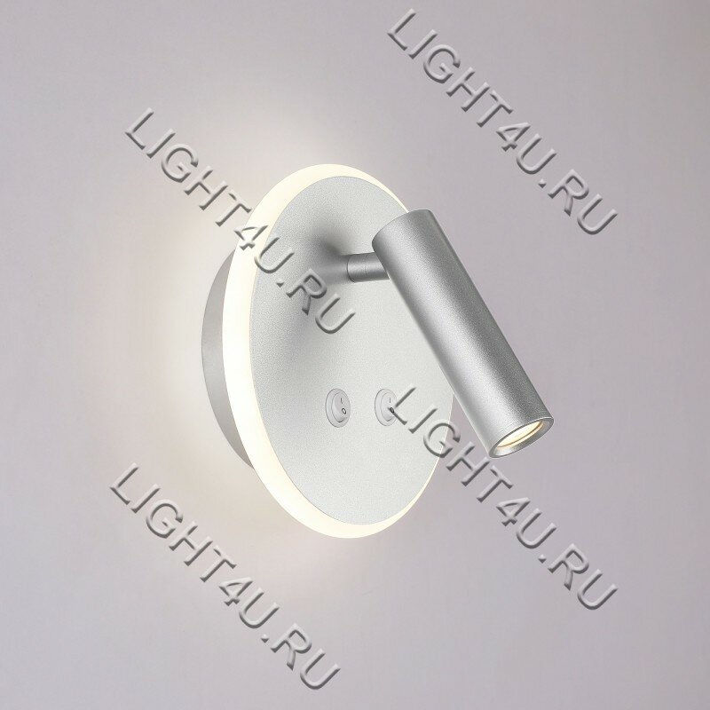 Настенный светодиодный светильник Elektrostandard Tera MRL LED 1014, 7+3 Вт/4200K/3 режима, поворотный плафон, серебро