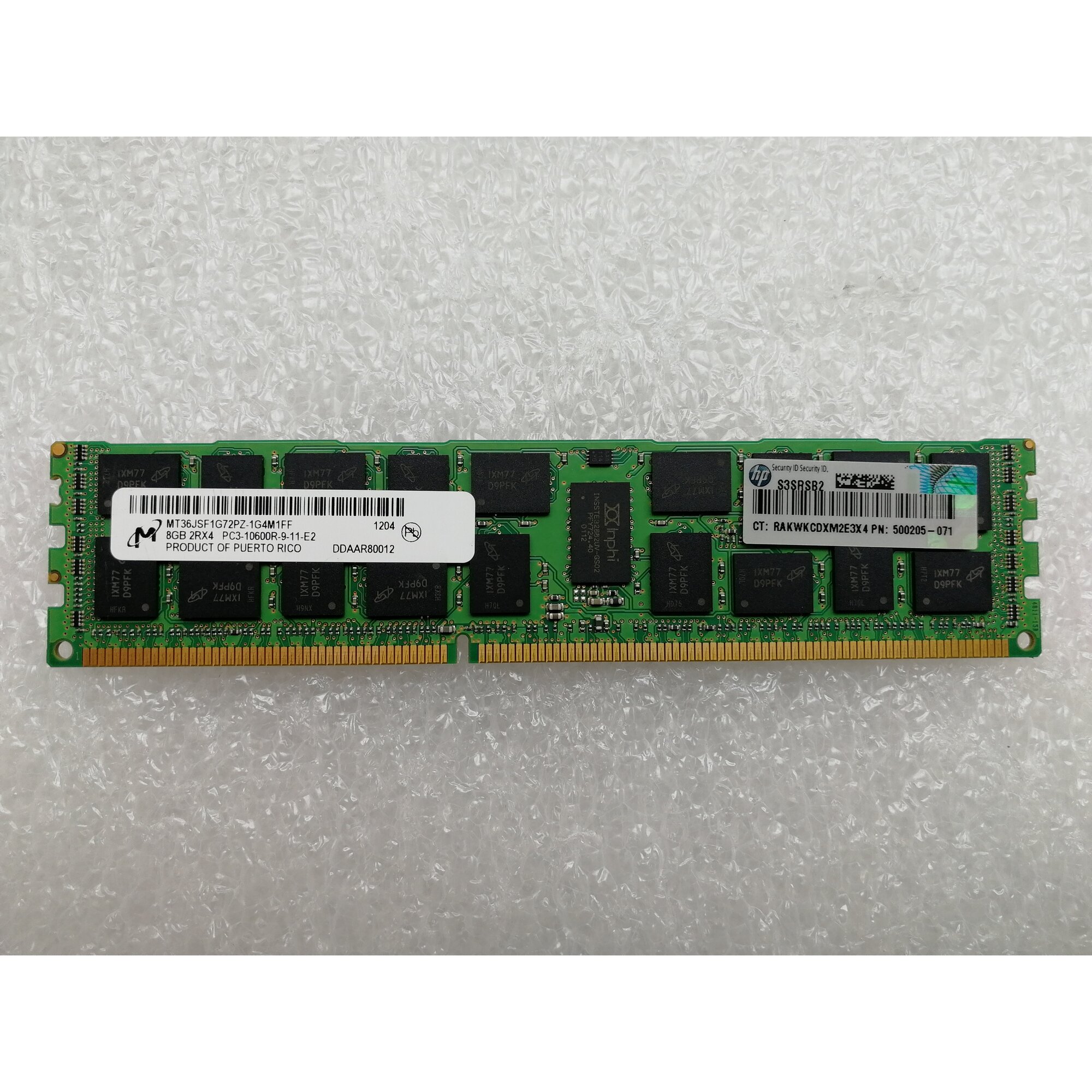 Оперативная память HP 8Gb 2Rx4 PC3-10600R DDR3-1333 ECC CL9 , 500205-071 , 501536-001 (500662-B21)