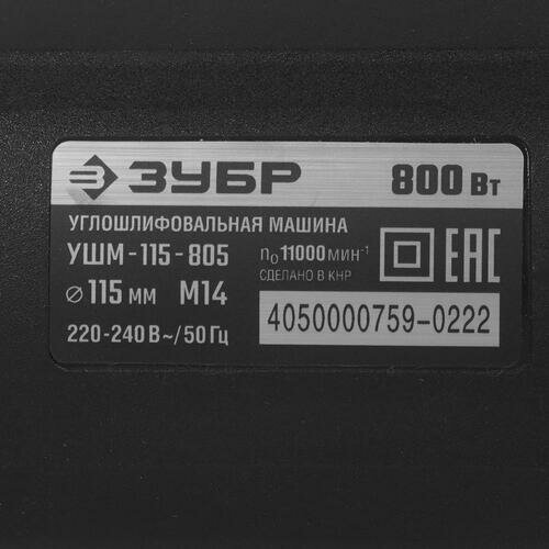 Углошлифовальная машина Зубр УШМ-115-805, 800 Вт, 115 мм