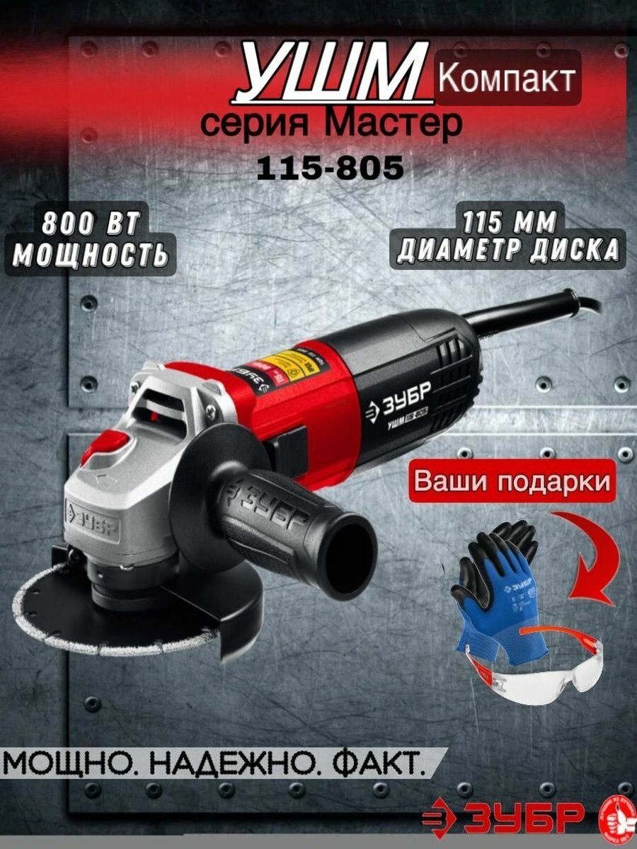 Шлифмашина угловая ЗУБР Мастер УШМ-115-805 800 Вт
