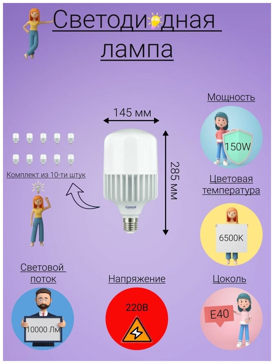 СохранитьЛампочка светодиодная, General, Комплект из 10 шт., 150 Вт, Цоколь E40, 6500К, Форма лампы Бочонок, HPL интересное:
