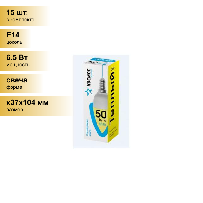 Сохранить(15 шт.) Светодиодная лампочка Космос свеча E14 6,5W (6W) (460lm) 3000K 2K матов. 99x37 LkecLED6.5wCNE1430 . Цоколь E14 интересное: